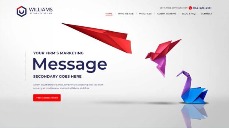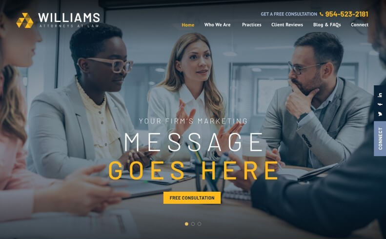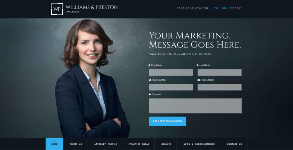 Designed to boost conversions and leads through highlighting the firm’s results and drive engagement through multiple forms and call-to-actions.